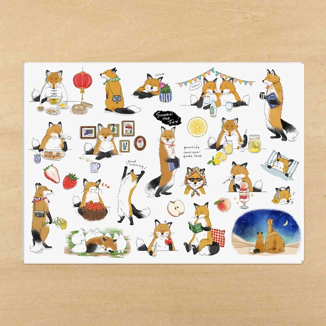 ポンチセ10周年記念のオリジナルキャラクターとして登場したきつねのスマリくん。 ご当地のメモ紙を作ったところとても人気で、他のアイテムも出ないんですか?と 度々リクエスト頂くようになりました。 まずは手帳やお手紙に使えるマステシートの発売です。 これまでのご当地から人気のデザインをピックアップし、 さらに追加でいくつかイラストを描き起こしました。 シールの素材はマスキングテープと同じ和紙の弱粘着シートシールです。 貼った後でもそっとはがしてまた貼って、という使い方もできるので予定が変化しやすい手帳にもぴったりです。 カットラインは入っておらず、ハサミで切り取ってお使い頂くタイプです。 サイズ:A5サイズ 横210mm 縦148mm ※色合いは、ご覧の環境によって異なって見える場合がございますので、あらかじめご了承ください。