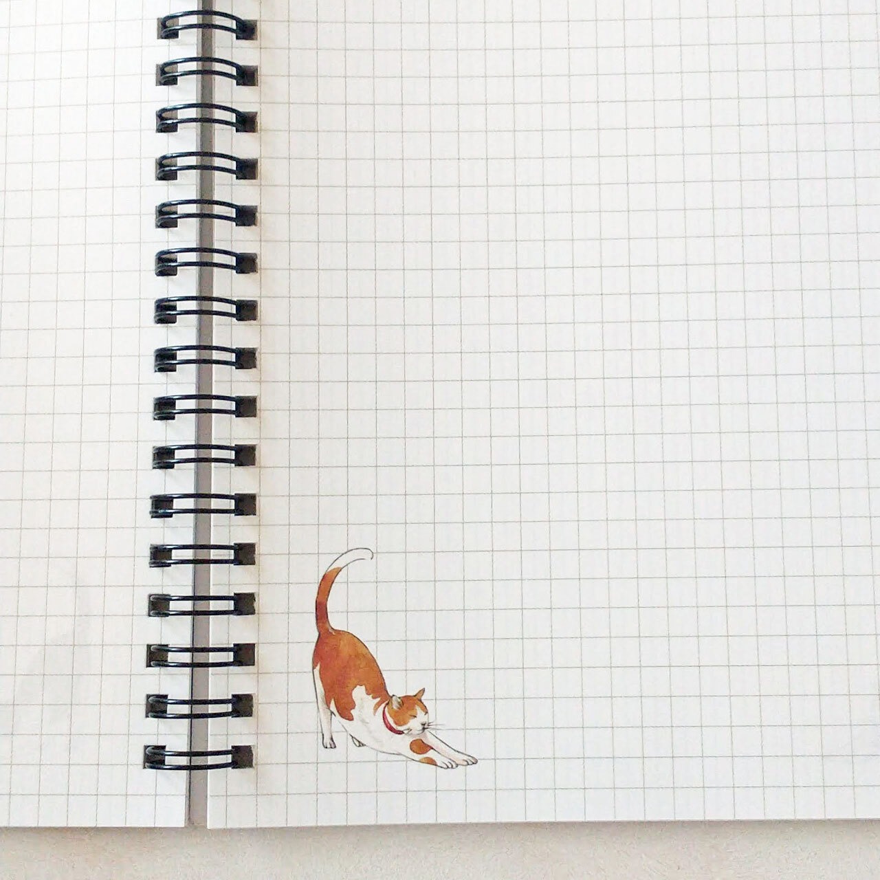 ●中面は2種類の猫のイラスト付き方眼罫(ブラウン)が20ページ毎に