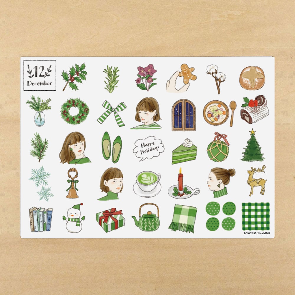 12月の季節のモチーフ31種類が詰まったマスキングシート(弱粘着シール)です。