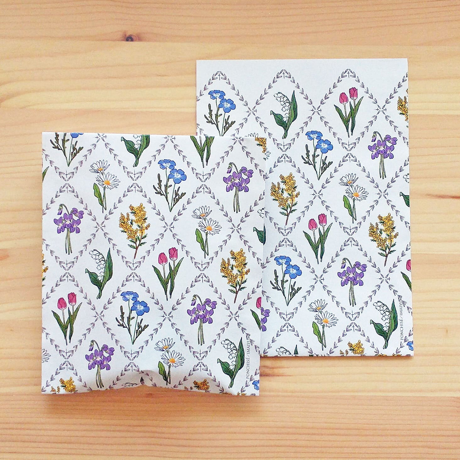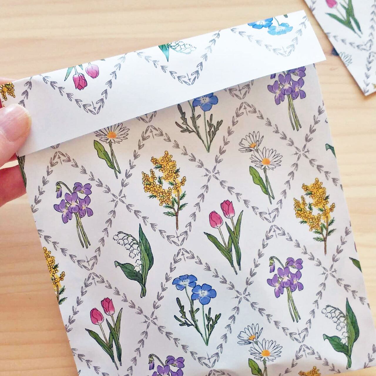 花のイラストをデザインした少し大きめのラッピング袋です。