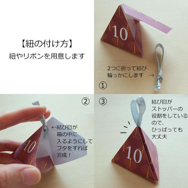 3)紐をつける場合は【紐の付け方】を参考にしてください。
