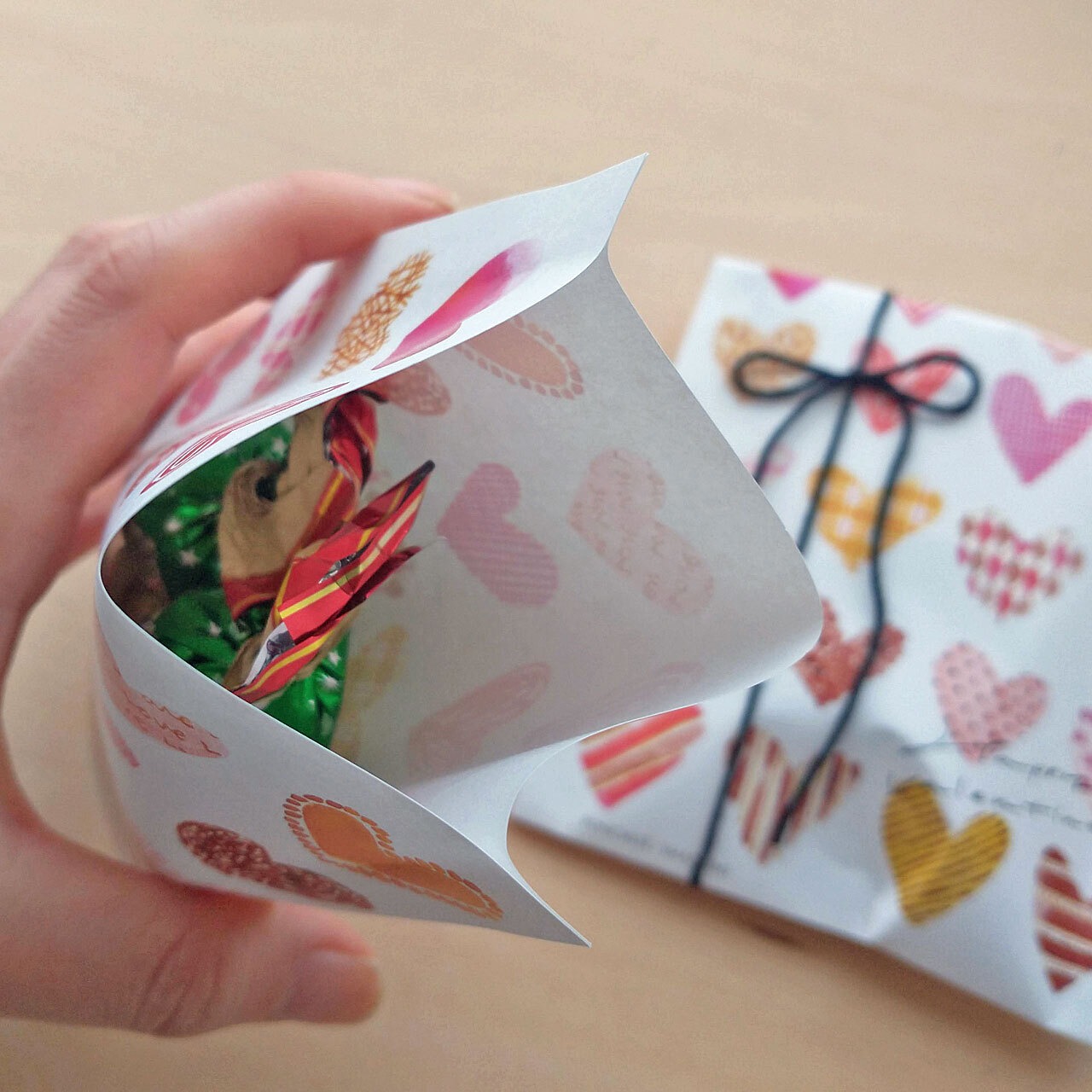 ハートのラッピング袋は、プレゼントだけでなく、小物の整理やカードの保管にも役立ちます。心のこもったギフトを、さらに素敵に演出してくれるアイテムです。
